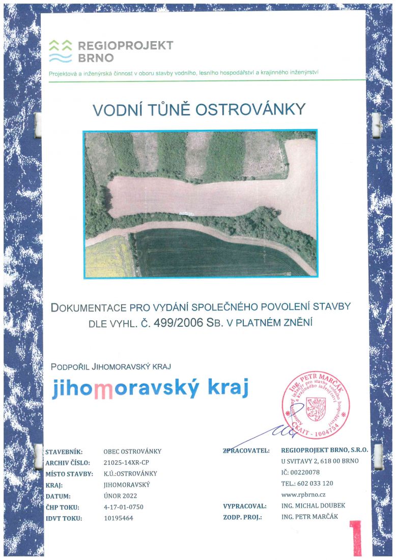 Projekt: "Vodní tůně Ostrovánky"